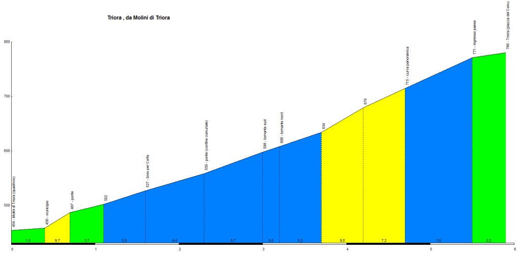 Partenza con il treno delle 5:31 per arrivare poco dopo le 9:00 ad Arma di Taggia. In sella si segue il fiume verso Badalucco e poi San Giovanni della Valle. Dai Molini di Triora la strada si impenna fino al paese delle streghe: Triora. Poi si continua verso Greppo e Realdo (1007 m slm), paesini a dir poco stupendi inerpicati sulla roccia: una vera meraviglia e orgoglio ligure.