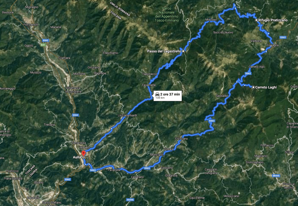 25 Luglio – 108 km con Pino e Paolo (dislivello quasi 2500 m): Aulla (64 m slm), P.so del Cerreto (1261 m slm), Cerreto Laghi (1344 m slm), Località Collagna (830 m slm), P.so di Pratizzano (1200 m slm), Bivio SS15 (730 m slm), P.so di Lagastrello (1198 m slm), Aulla (64 m slm).