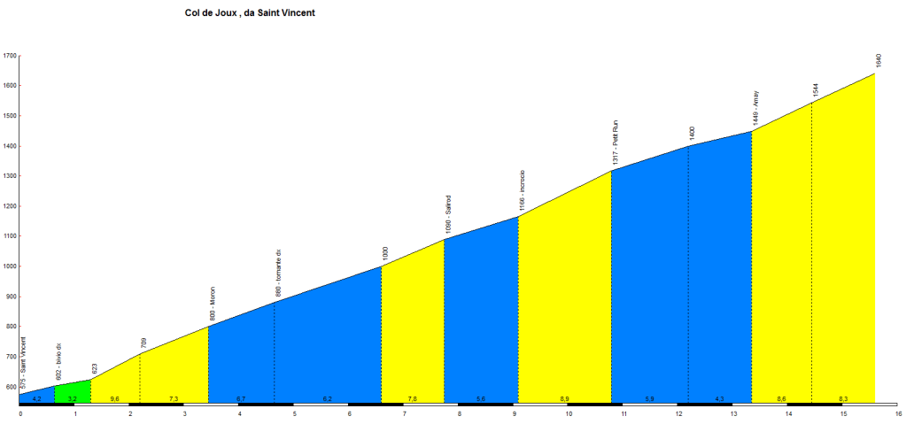 4 Agosto – Con ammiraglia al seguito, crono-scalata sul Col de Joux da Saint Vincent (Valle d’Aosta) e polenta all’Etoile de Neige con Amici.